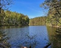 Комфортные дома для семейного отдыха. Есть сауна. Вокруг лес и рядом озеро с рестораном. Разрешено с собачками.