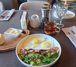 Завтрак вкусный и с хорошим выбором. Очень понравился интерьер ресторана. Официант был вежливым и внимательным - это приятно порадовало.
