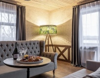 Если Вы искали идеальный уголок отдыха и расслабления в черте города, это Хюгге на Озере. Прекрасный отель, бассейн с подогревом с 10 утра до 10 вечера, сауны, массаж. Выход к озеру, природа. Есть моменты, которые не могу не отметить, проживали в номере-люкс. Прекрасный номер, уютный, удобный, просторный. Есть огромная терраса с открытой ванной. Изюминка, прекрасно смотрится на фото и эмоции вызывает невероятные, пена, гопячая вода и ты под открытым небом! Восторг! Но: 1. Сервисный сбор за румсервис(доставка еды в номер из ресторана 10%), впервые с таким сталкиваюсь. 2. Отсутствие полотенец для бассейна (доп.халаты и полотенца платные). 3. Клиенториентированность персонала на 2*.3. Отсутсвие льда в гостинице (отказали, сказали, что не хватит льда для коктельного бара). Итог, наполнение гостиницы соответсвует заявленной звездности, но сервис нужно серьезно подтянуть. Обучайте персонал общению с гостями. Фраза"идет время заселения, Вы не в приоритете" просили протереть стол на террасе после дождя и ветра, и подготовить ванную на этой же террасе. Привет административному блоку!=)) ну и конечно, кофе машину (текла вода и заливала стол и пол) нам не заменили за два дня проживания, и на день рождения комплимента не было, предложили самим сходить и в баре взять торик😅