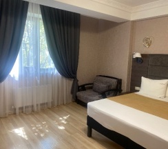 Бронировали 4 ночи и остались в восторге. Отдельное спасибо отзывчивой администратору Марии, встретила нас рано утром 22.06, объяснила подробно, где рядом находится столовая, как добраться до жд-станции(которая находится в 10 минутах ходьбы от гостиницы!)и т.к номер был уже готов, заселила нас намного раньше, чем в 14:00☺️ Номера чистые и светлые, можно отдать вещи на стирку, есть гладильная доска, в номере вода, чай, кофе, халаты и полотенца, гель для душа, шампуни и зубные щетки. Есть парковка для машин. Администраторы готовы помочь с любым вопросом ( например, насколько холодно подниматься на Эльбрус, что лучше надеть😁)