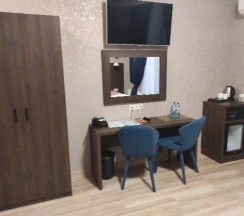 Замечательный отель, выше всех похвал! Удобное расположение отеля (для нас - точно, так как мы были на машине) , рядом с Пятигорском и Кисловодском ! Номер очень уютный, чистый и комфортный, продуманы все мелочи для комфортного пребывания (шампунь, мыло, весь необходимый набор для путешествий, халат, тапочки), чайная станция, очень удобная кровать с матрасом и две подушки (одна помягче, другая пожёстче на выбор) , внизу есть пятерочка, через дорогу -столовая (очень вкусно и недорого), рядом автобусная станция, если без машины. Фото с реальностью совпадают! Рекомендуем однозначно!
