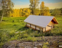 Один из дней медового месяца решили провести здесь. Взяли шатёр, очень красивый, уютный, чистый. Для отдыха есть всё, что нужно: баня, душ, мангал. Прокатились на моторной лодке, природа в окрестностях тоже очень понравилась! Прекрасная девушка администратор всё рассказала, показала, объяснила, спасибо ей.