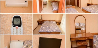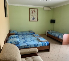 4х местный номер со всеми удобствами. Находится на 2 и 3 этаже 4х этажного здания. В номере душ, туалет, холодильник, кондиционер, балкон. Номер оборудован 4 односпальными кроватями, которые можно сдвигать и раздвигать, тумбочками, зеркалом, шкафом для одежды.