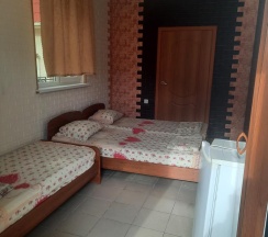 Трехместный номер с личным балконом. В номере 3 раздельные кровати. Все удобства: душ, холодильник, туалет, кондиционер, тумбочка, журнальный столик, телевизор, шкаф для одежды. Находится на 2 и 3 этажах 4 этажного дома
