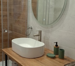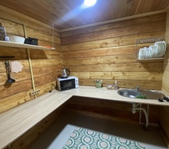 Даже если заселитесь в дом без удобств, на территории есть комфортные душевые, туалеты, кухня
