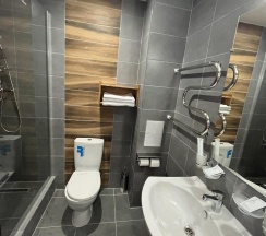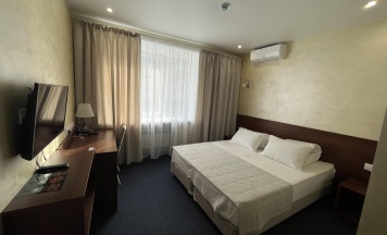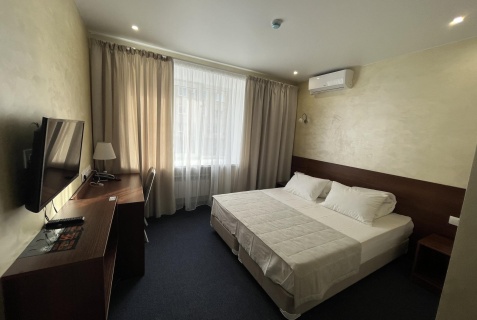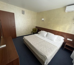 В номере 1 кровать 150см, телевизор, холодильник, сплит- система, сан.узел в номере, стол.