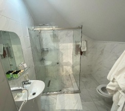 Отель отличный во всех отношениях. Чисто, все новое, красивое. Отдельное спасибо персоналу, очень приветливые, добрые, отзывчивые! Завтраки от улыбчивой Златы превосходные, разнообразные, обильные, из 3х блюд. Месторасположение отеля удобное, пение птиц и никаких машин, нет толпы людей. Есть бассейн, финская сауна, организована детская площадка, есть мангал, стол. Рекомендую однозначно!