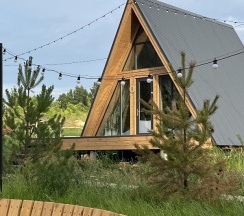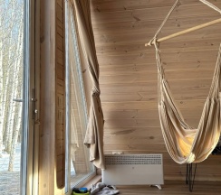 Очень уютное красивое место. В домике есть все необходимое, выглядит он супер красиво, из окон открывается вид на лес, что очень атмосферно.