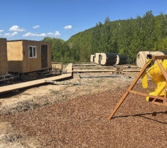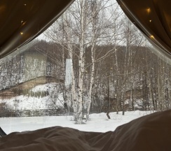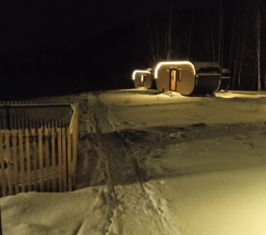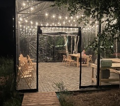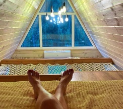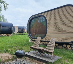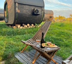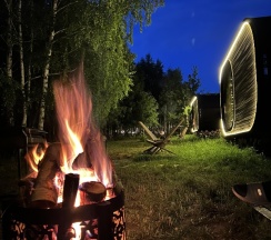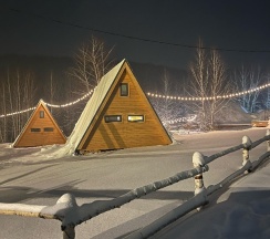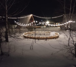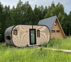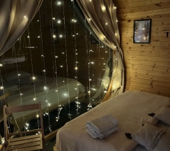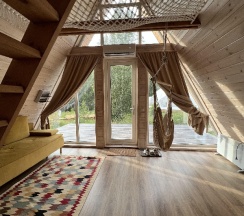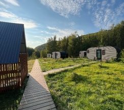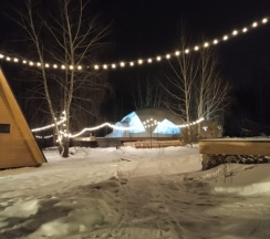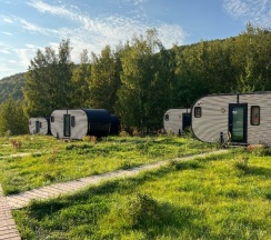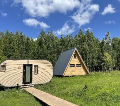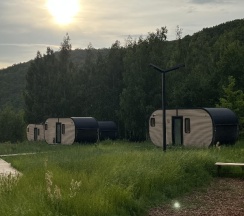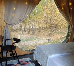 Отличный глэмпинг. В красивом месте , рядом озеро . Баня, чан и бассейн с подогревом - просто сказка !!! Домики хорошо оборудованные , чисто и уютно . Вечером можно посмотреть фильм на проекторе.