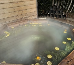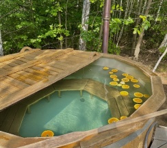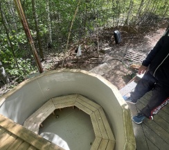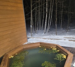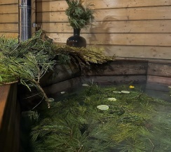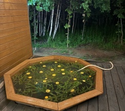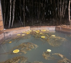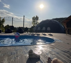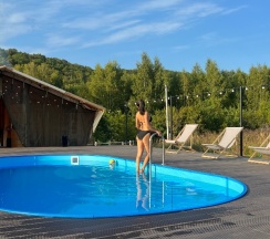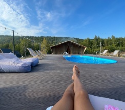 Купил меня именно этот глэмпинг тем, что в нем есть подогреваемый бассейн! Еще естественно сходили в баню с чаном.
