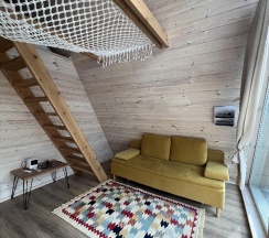 Единственные два минуса - плохо уходящая вода в раковине в санузле . И отсутствие ограждений на «террасе» домика (ну это чисто мне как маме было страшно за детей , что упадут )