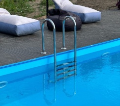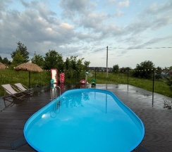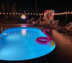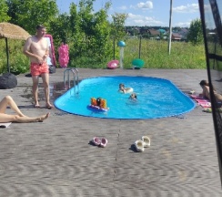Про бассейн😊 мы с детками наплескаличь вдоволь, чистый , вода теплая. Удобные кресла и лежаки , красивое оформление зоны возле бассейна. Даже при полной загрузке глемпинга было очень комфортно 👌