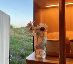 Мы в полном восторге от нашего отдыха в этом глэмпинге! Всё продумано до мелочей: уютные и чистые домики, маленький кухонный уголок, стильный интерьер. В домике было абсолютно всё необходимое — от чайника и кофе до зубной щётки в ванной.