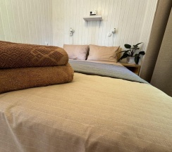 Спальная комната на первом этаже сдвумя односпальными кроватями (при необходимости можно совместить). На втором этаже двуспальная кровать, двуспальный диван, односпальная кровать, детская кроватка. Подушки, одеяла. Постельные принадлежности и банные полотенца.
