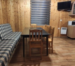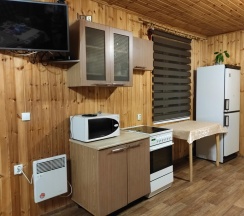 В распоряжении гостей 5 коттеджей разной вместимости с индивидуальной баней, беседкой/ террасой, мангалом на каждый. Дома оснащены всем необходимым для комфортного проживания: стиральная машина, холодная и горячая вода, душевая кабина, электроплита, холодильник, микроволновая печь, чайник, спутниковое тв триколор/проектор, фен, утюг, сушилка, вся необходимая посуда. Кухня оборудована всем необходимым для приготовления пищи.