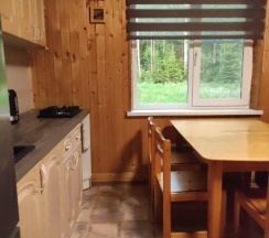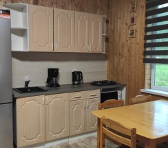 В доме есть все необходимое для комфортного проживания: полностью оборудованная кухня с плитой, чайником, холодильником, микроволновой печью, кофеваркой и посудой. В наличии чай, кофе, сахар и другие специи. Душ и туалет в доме. Индивидуальные полотенца для каждого гостя, шампунь и гель для душа предоставляются бесплатно. Уютная гостиная с фантастическим видом природы в каждом окне. Терраса , где можно наслаждаться свежим воздухом и солнечными лучами. Мангал с решетками, шампурами для приготовления еды на свежем воздухе.