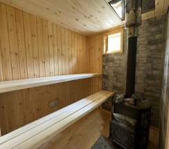 Идеален для пар. Максимальная вместительность - 4 человека. В доме: кондиционер, стиральная машина, холодная и горячая вода, сауна на дровах, душевая кабина, электроплита, холодильник, микроволновка, чайник, спутниковое тв, проектор, фен, утюг, сушилка, вся необходимая посуда, постельные принадлежности, полотенца. Комфортная терраса, мангал, шампуры и решетка.