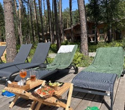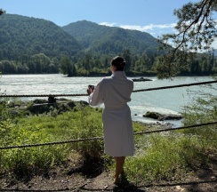 Достойный экокурорт с большой территорией на берегу Катуни, открытым бассейном, СПА зоной с разными баньками и потрясающим видом. Шале комфортные с террасой, очагом, удобными кроватями king size. Очень хорошие завтраки в ресторане Сосны, есть терраса, чтобы завтракать или ужинать, глядя на Катунь. Уровень сервиса соответствует 5*, приятно удивлены