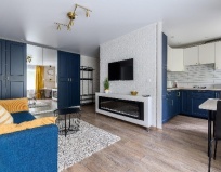 В апартаментах новый стильный современный ремонт, 2 комнаты + ещё одна небольшая с одноместной кроватью.