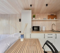Абсолютно новый домик полностью из дерева с кроватью 160*200 или раздельными 80*200 на выбор с двориком, кухней, душевой с туалетом и с сауной во дворе за дополнительную оплату.