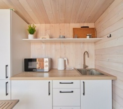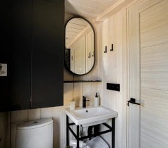 Очень атмосферное место 🔥 , понравилось все ! Домик стильный и аккуратный, самое главное очень теплый . Большое панорамное окно - можно любоваться природой) в домике есть всё для комфортного проживания. Всё до мелочей продумано. Место рекомендую!!!