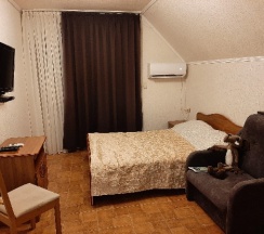 Отдыхали с мужем и дочкой в начале февраля. Бронировали 2местный номер на 2ом этаже. В номере фен, одноразовые гели, шампуни, телевизор, балкон, кондиционер. На этаже: чайник, утюг с гладильной доской. На 1 этаже кухня(есть плита, микроволновка, но мы не пользовались).Гостевой дом очень чистый, уютный. Заходишь-и пахнет чистотой! Хозяева- доброжелательные, общительные. Расположение удачное, тихая улочка, море рядом, магазины и столовые,кафешки- тоже все рядом. Нам понравилось! Спасибо!