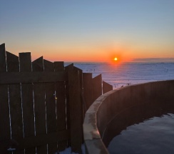 озеро Бусе и Анивский залив, где располагается глемпинг - это стремительный закат на штормящем море и молодой месяц, баня рядом с морем и небо!!! низкое звёздное небо. вкусный ужин под открытым небом, на ветру, который казался в тот момент теплым, нежным и ласковым.