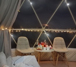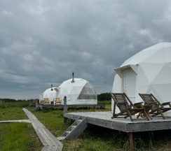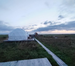 Побывали в этом прекрасном месте с мужем вдвоём! Остались в полном восторге! Глэмпинг находится в безлюдном месте, действительно на едине с природой! Спасибо огромное хозяину этого места, настолько все продумано для комфортного проживания, чисто, уютно! С душой все сделано для гостей! Банька отличная! Отдохнули душой и телом! В куполе стоит печь, которую нужно топить, но это как раз и вносит свою атмосферу отдыха на природе, запах и треск дров это вообще супер! Отдельное спасибо Александру!!! Встретил нас, все рассказал, показал, очень приятно было с ним общаться, баньку нам истопил! Очень приятный и ненавязчивый человек! Мы очень замечательно провели время , уезжать совсем не хотелось. Обязательно приедем ещё!