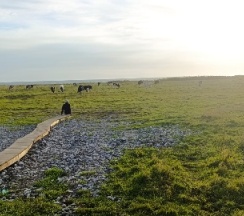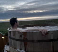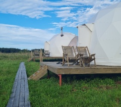 Мы отдыхали в Глэмпинге 4 дня, в принципе все понравилось, красивое место недалеко от моря с достаточно чистым пляжем. Сам глэмпинг расположен немного в низине поэтому есть проблема со стоящей водой, в тч на территории и парковке, без резиновых сапог сложно передвигаться, но хорошо, что между шатрами кухней и другими объектами есть деревянные дорожки. Очень дружелюбный сотрудник Александр. Очень понравилась купель на закате, вид завораживающий. Рядом красивое озеро Буссе, ходили туда каждый день, ели устриц и гребешки. В принципе места для прогулок имеются, а в хорошую погоду можно искупаться и позагорать. Сами шатры оборудованы всем необходимым, спать было очень комфортно, но днем в солнечную погоду жарковато. Особенно порадовала хорошо оборудованная кухня-столовая, там приятно готовить пищу, да и просто посидеть. Не совсем понравилась мангальная зона, потому что там во первых стояла вода, ну а во вторых не очень уютно и тесновато. В общем владельцам глэмпинга рекомендую доработать территорию, чтобы были какие уютные общественные пространства и решать проблему с стоящей водой.