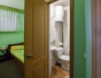 Оставались в 3х местом номере за 1800,удобства в номере, чайник на этаже.