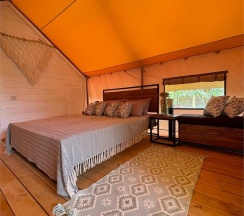 В глэмпинге есть кондиционер в номерах, бассейн и другие удобства.