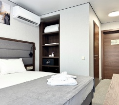 Призма имеет комфортабельные спальные места, собственную террасу , данная категория без санузла в номере, но имеется в шаговой доступности от номера.