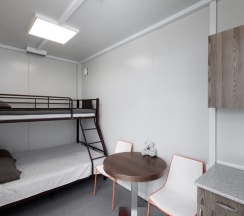 В НОМЕРЕ БОЛЬШАЯ ДВУХСПАЛЬНАЯ КРОВАТЬ + СПАЛЬНОЕ МЕСТО НА ВТОРОМ ЯРУСЕ ДО 70 КГ.МИНИКУХНЯ.ЧАЙНИК.СТОЛОВЫЕ ПРИБОРЫ.ДУШ ТУАЛЕТ УМЫВАЛЬНИК.СТОЛ И ДВА СТУЛА.ДОПОЛНИТЕЛЬНЫЕ ОБОГРЕВАТЕЛИ В САНУЗЛЕ И ЖИЛОЙ КОМНАТЕ.