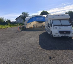 Питч -место для автодома или жилого прицепа. В цену стоянки включено пользование всей инфраструктурой кемпинга (кухня .душ .санузлы) Залив и слив воды. Слив капсулы .Подключение к сети 220 Вт.