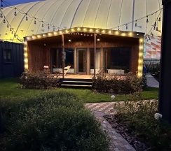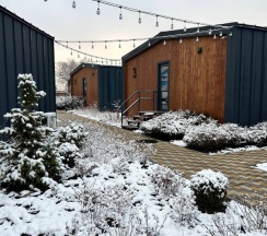в домах чисто уютно. рядом есть мангалка приготовить мясо, вообще нам очень понравилось, сказали летом будет бассейн, будем ждать открытия