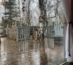 Бронировали 9 домик. Очень удачно вышло, что заехали без снега, а ночью он пошёл! С утра был великолепный вид на заснеженные окрестности. Купель же, с лежащим вокруг снегом,была незабыываема!!!