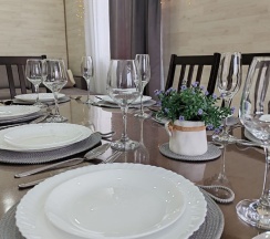 Шикарный домик, очень светлая атмосфера, все такое новое! Отлично работает посудомойка, печка супер! Красивая посуда, очень удобный диван, чистое постельное белье!