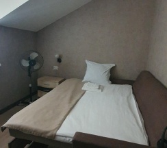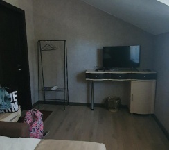 Приятное место, чисто, аккуратно, прилично, расположение отличное. есть кухня с чайником, холл с диваном и тв. Из минусов: в нашем номере ночью был слышен гул от кондиционера из нижней комнаты (может и не кондер, но больше версий не придумали). И подушки очень малекенькие и жиденькие и только одна на кровать, запасных не нашли, ящики пустые. В остальном отлично- есть чай, сахар, тапочки, зубная паста и щетка, даже зонт.