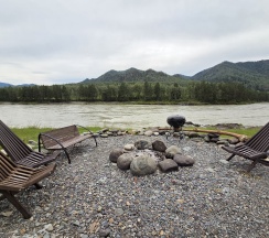 Замечательная база, а ее месторасположение это отдельный кайф - река Катунь и домики у подножия гор! Завтра в номер приносит приветливый администратор, вкусно и с душой. В номере все чисто и для гостей. Кухонная зона оборудова всем, индукционная плитка убирается в шкаф, очередной +, если она не нужна, не занимает место. Личная мангальная зона огорожена от посторонних глаз) в целом территория очень красивая, с качелями и костровищами. Стеллаж с играми, настолками, отдельный +. Ну и пес Гоша, это ещё одно чудо этой базы))) Обязательно приедем ещё)