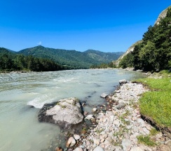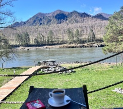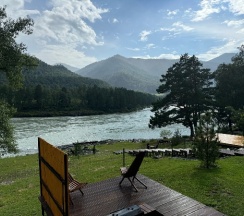 Отдыхали в июне 2025 года. Шикарное расположение базы: с одной стороны горы, с другой стороны красивая река Катунь. Место тихое, но при этом недалеко от
