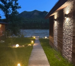 Самая красивая база, на которой можно побывать! Домики с панорамными окнами, дизайнерским ремонтом и всем необходимым для отдыха: банные принадлежности, кухня с плитой и микроволновой, посуда топчик 👍 мангал и решетки в общем доступе, хочешь у домика, хочешь у воды. Отзывчивый персонал, к которому можно обратиться с любой просьбой. Расположение базы выигрывает, вроде и за горой, рядом тихо, но центр чемала с магазинами и кафешками в 5 минутах. Парковка огорожена, на закрытой территории. Отдыхали на разных базах, но эта самая лучшая!