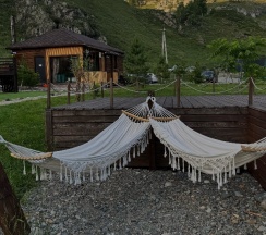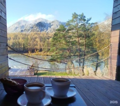 Великолепный отель. Ухоженная территория, бассейн, мангальные площадки, качели, гамаки и ВИДЫ... Панорамные виды на Катунь. Мы в отель приехали, т.к. искали чан с видом на Катунь и поняли, что обязательно приедем сюда отдохнуть!