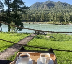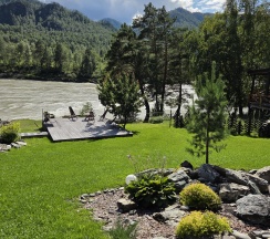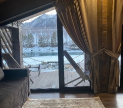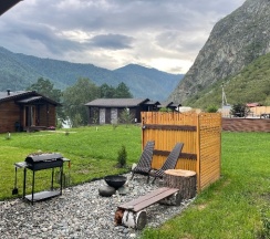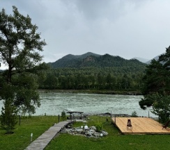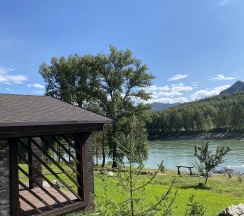 Провели незабываемые выходные.Расположение просто идеальное: горы, прекрасный вид на Катунь и невероятно ухоженная территория. Зелени столько, что глаз радуется! Утром пение птиц, свежий горный воздух – это настоящий релакс для души и тела. Домик шикарный со всем необходимым ( полотенца, тапочки, фен, пледы, посуда, холодильник). Современный ремонт,белое постельное белье. На территории бассейн, в знойную жару- шикарно охладиться.