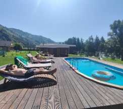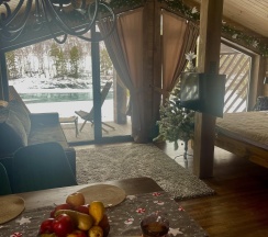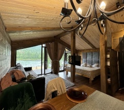 Очень уютная, комфортная и красивая база отдыха. Ухоженная территория, бассейн с подогревом, подсветка территории просто фантастика! Домики новые, интерьеры созданы со вкусом и заботой о гостях.