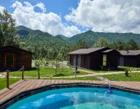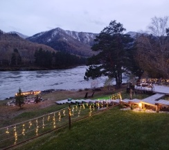 Чемала. В домиках чисто, уютно, комфортно, из панорамных окон открывается шикарный вид на Катунь. Очень порадовал бассейн с подогревом, что с учетом погоды в горном немаловажно. Баня и чан - это просто восторг. Интересная задумка у бани - панорамное окно с видом на Катунь. Отдельно отметим вкусные и сытные завтраки. Ну и в конце выражаем слова благодарности за гостеприимство, отзывчивость, уютную атмосферу на базе ее хозяевам: Ане и Сергею! Очень надеемся, что посетим вас вновь😊