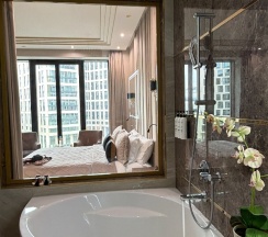 Очень понравился отель. Отдыхали в номере Люкс: стильно, дорого, все предусмотрено до мелочей: халаты, тапочки, средства личной гигиены, отпариватель, стойка для отпаривателя, посуда, бокалы для шампанского, вина, стаканы, кружки, штопор и тд. Очень красивый вид из окон. Из минусов: есть кофемашина, но капсула с кофе - 200руб. Есть чайник, но пакетик чая - 150 руб…. платный мини -бар, это понятно. Но водичку бесплатную можно было бы предоставить. Даже в дешевых гостиницах ставят воду или есть кулер на этаже. Нет парковки для машины. Мы сами виноваты, что не спросили заранее, но раньше даже не сталкивались. Для нас было неожиданностью, что припарковать машину у отеля - 380- 450 руб. в час 🙈 Считаю, что отель должен заранее предупреждать об отсутствии парковки. Нам было бы дешевле добраться на такси(((. А целом, впечатления приятные!