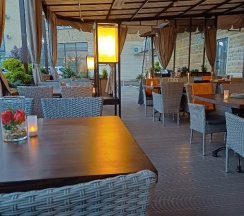 Про ресторан. Завтраки на 5 из 5, если про кухню! Обед подали на втором этаже, где играла музыка настолько громко, что мы не слышали друг друга. На просьбу прибрать громкость нам ответили, что в ресторане без музыки никак. Мы про громкость так то говорили. Летняя веранда хороша, но опять же громкость такая от динамиков, что единения с природой никакого