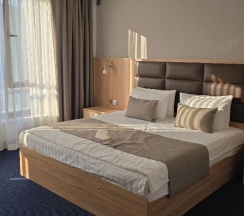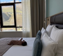Классный отель в удивительно красивом месте! Есть огромный бассейн, мы в нем плавали, там глубоко имейте в виду, если вы с детьми; сауна, тоже погрелись там, предлагаются оздоровительные процедуры, мы были один день только там, поэтому ничего не брали. Завтраки отличные, шведский стол, еда вкусная. Рядом есть баги, мы скатались в горы с гидом. Персонал очень вежливый и дружелюбный) Отель рекомендую👍