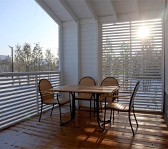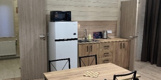 Прекрасные домики в которых очень тепло было. В домах все необходимое оборудование для отдыха.