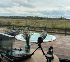 Отдыхали с мужем, остались в полном восторге! Часто ездим в разные загородные домики и есть с чем сравнить. Очень приятный персонал, всегда были на связи, быстро отвечали на все вопросы. Джакузи выше всех похвал, температуру контролировали сами. В домике удобная система умный дом, проигрыватель с огромным количеством пластинок, проектор, ночник со звездным небом, все очень понравилось. Спасибо!